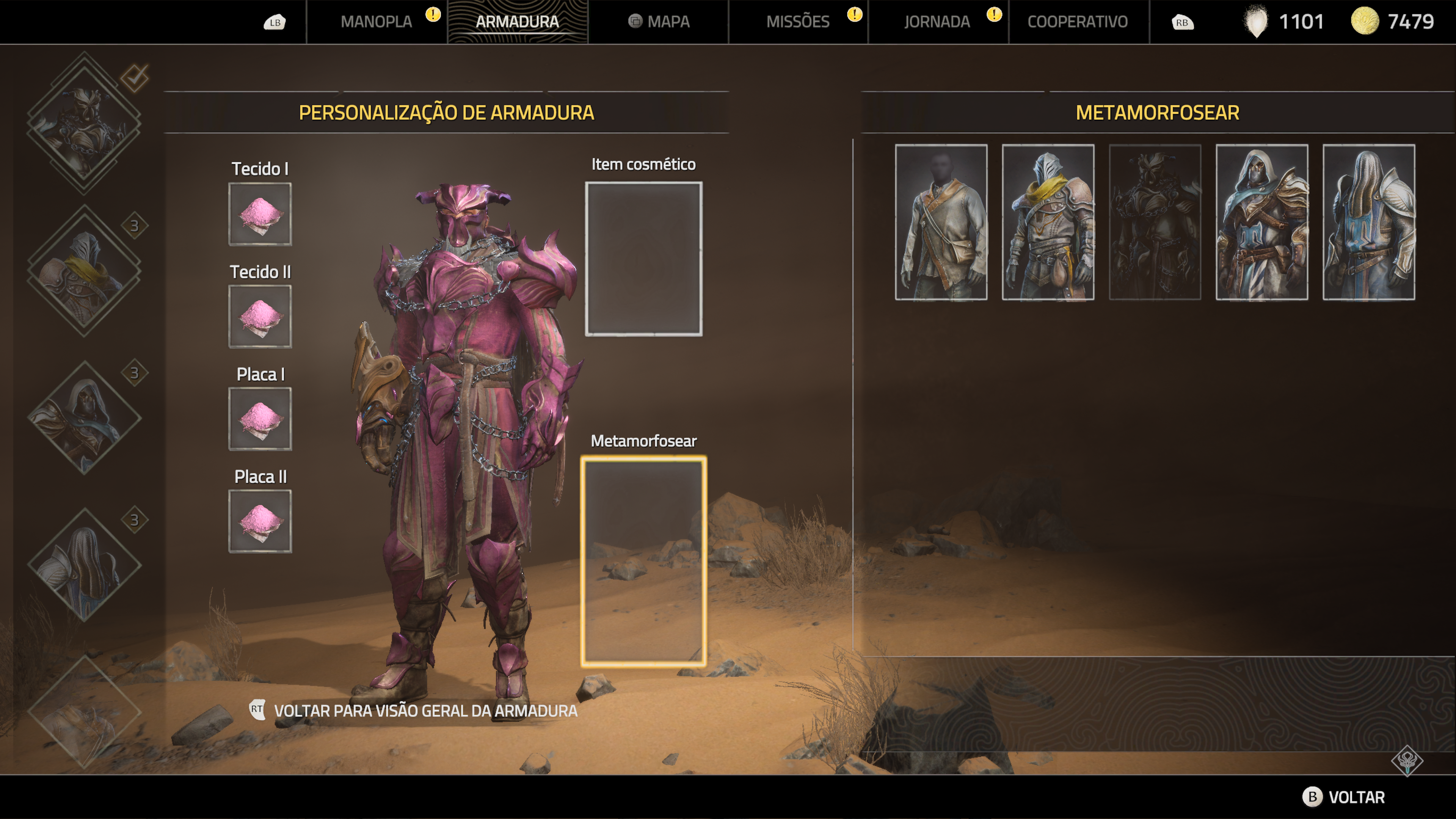 Além disso as armaduras se combinam com a montagem da sua build de Pedras de Essência, pois cada uma pede x pedras de tipo y para pode dar buff extra a um status da armadura. Inclusive existe uma vantagem que da bônus de status caso você tenha uma categoria completa com pedras do mesmo tipo em uma das divisões da Barra de Ímpeto.