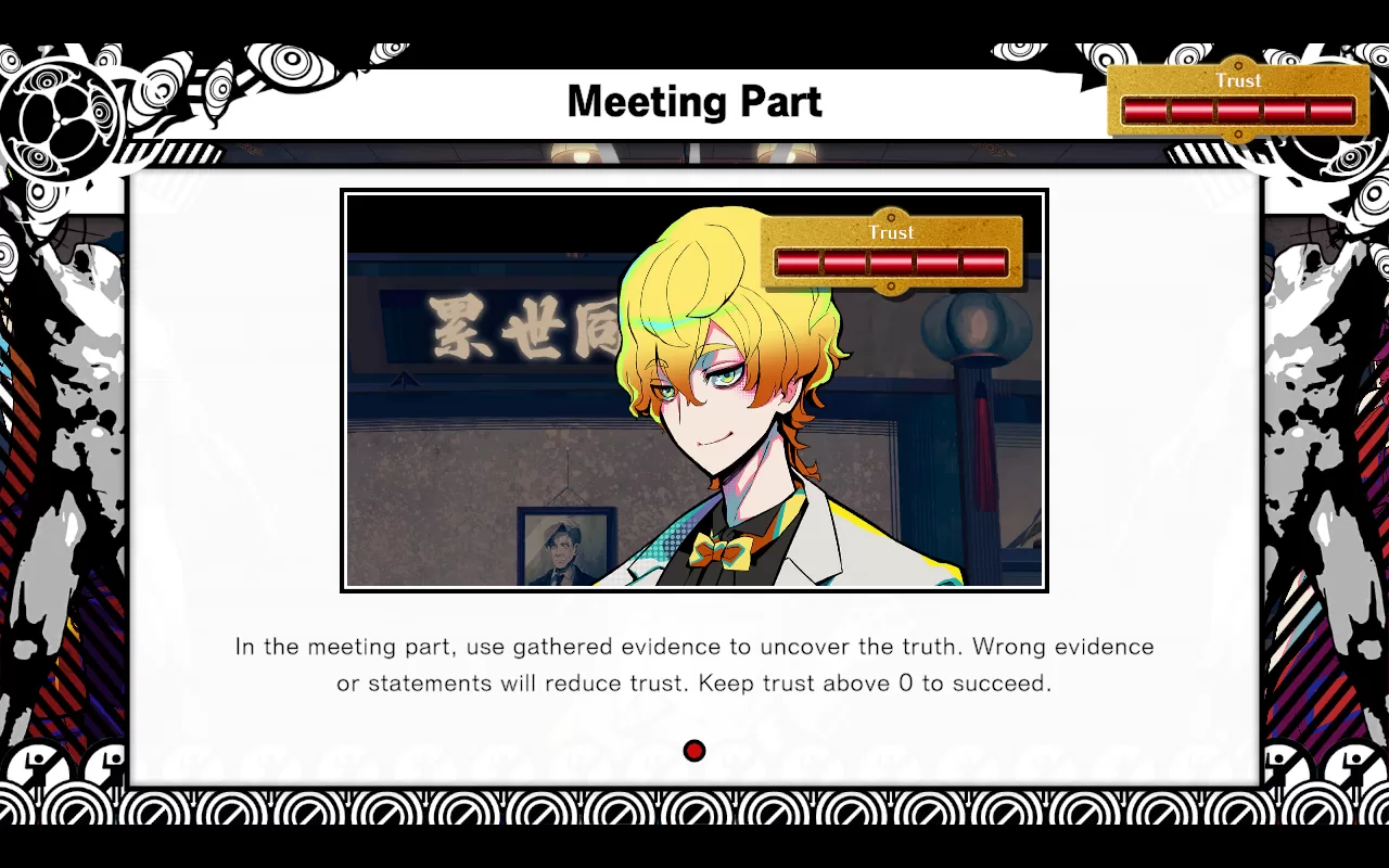 Existe uma barra de confiança, que vai se esgotando à medida que você pergunta ou deduz algo incorretamente. Alguns dos assassinatos beiram ao ridículo, no bom sentido, e o Inugami, na voz do Daisuke Ono, é apenas incrível.