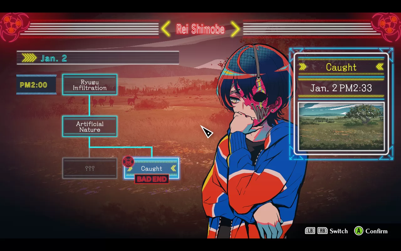 Talvez a rota mais longa do jogo, aqui nós temos uma clássica aventura em visual novel, aonde vamos mudando de pontos de vista e suas escolhas influenciam o andar da história, com direito a alguns bad endings e um flowchart.